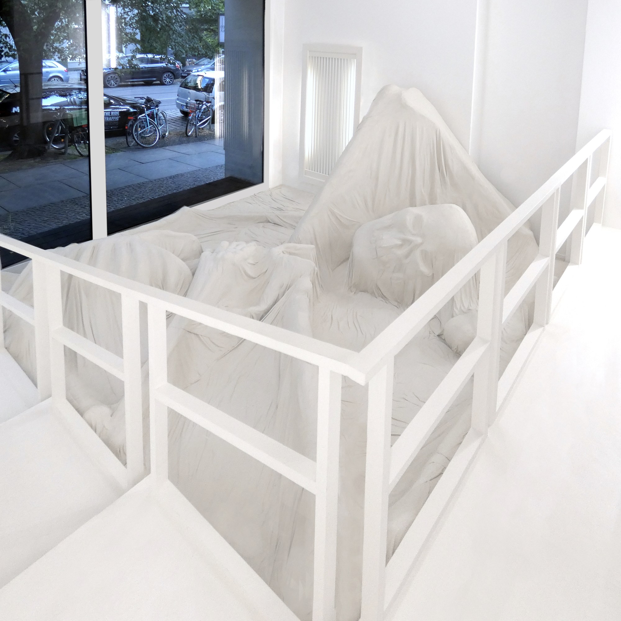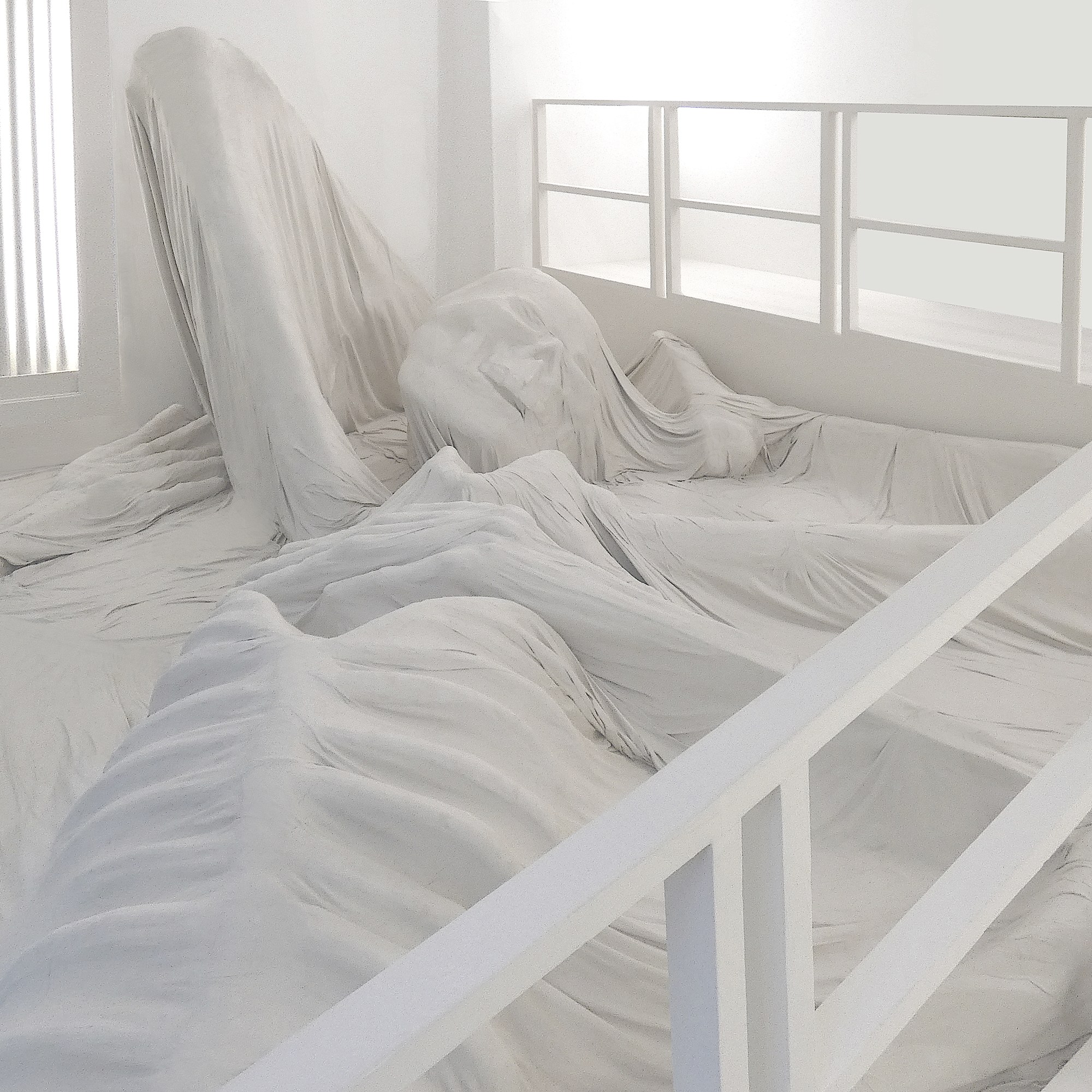 Dissolution (La mort), plâtre, tissu, argile, bois, 2020.