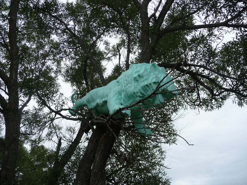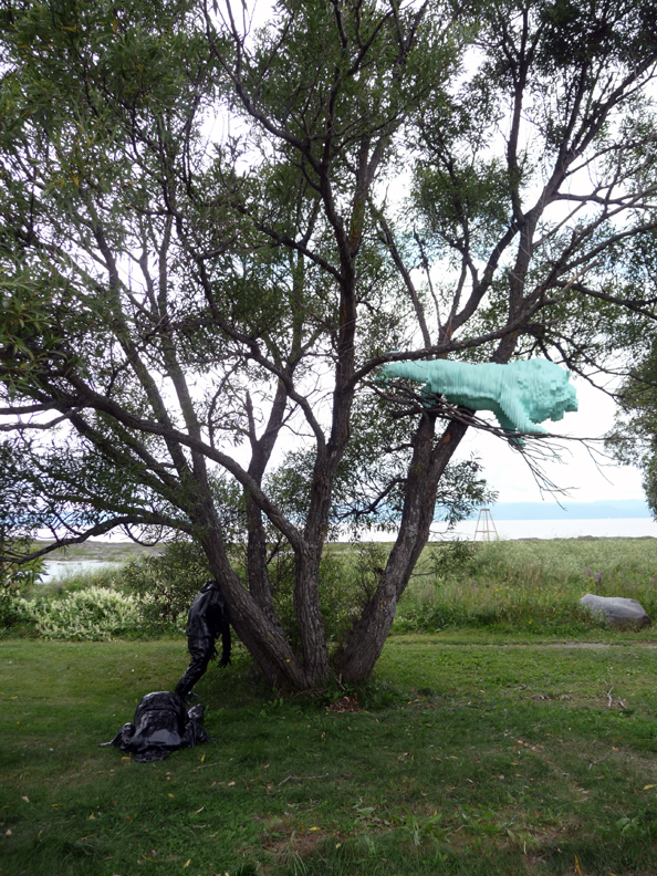 Le lion et la nature: Mousse de polystyrène, vêtements, peinture, plâtre et matériaux mixtes, 2010. Oeuvre présentée à laBiennale de sculpture contemporaine de St-Jean-Port-Joli, Québec.