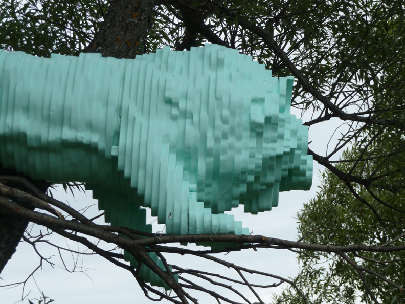 Lion’s nature: Polystyrene foam, clothing, paint, plaster and mixed materials, 2010. Work presented at the Biennial of Contemporary Sculpture in St-Jean-Port-Joli, Quebec.